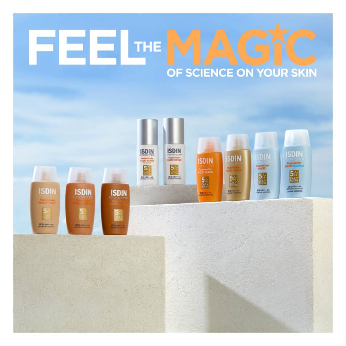 Isdin Fotoprotector Fusion Water Magic Repair SPF50 vai deixar a pele protegida enquanto repara os danos provocados pela exposição solar.